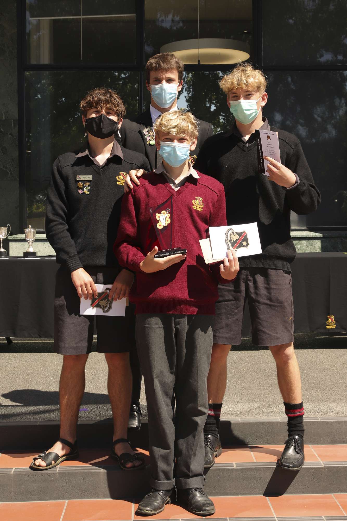 Super 8 Gold Badge recipients and National Championship Badge recipients for winning the Supreme Award at the National Sheilah Winn Shakespeare Festival (in attendance today): Harry White, Matthew Lee, Callum Matthews, Jarvis Buckell, Cameron Norton-Brown, and Leo Hayes.