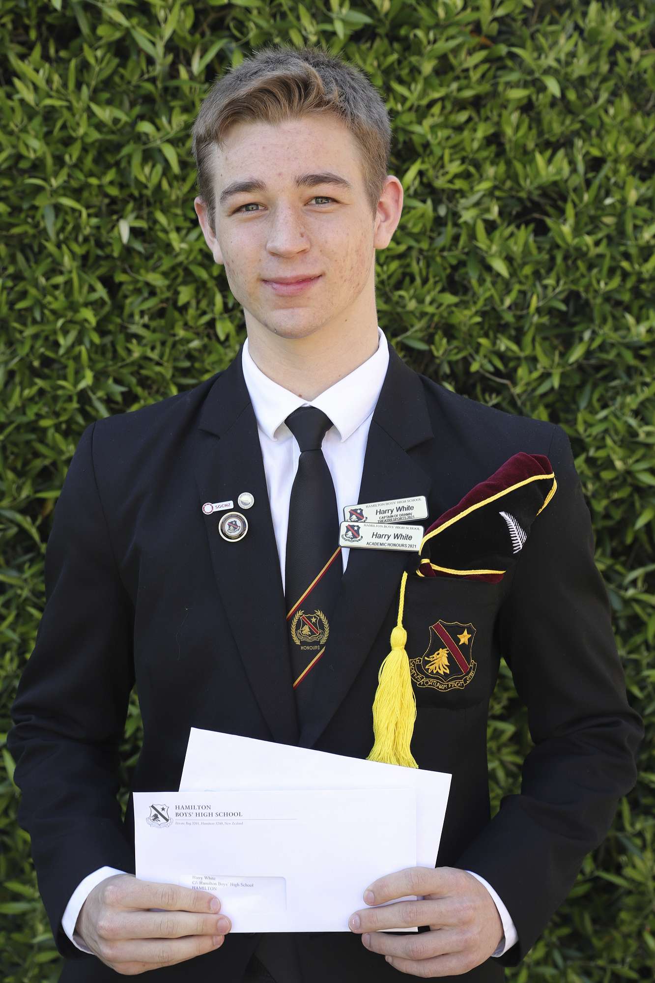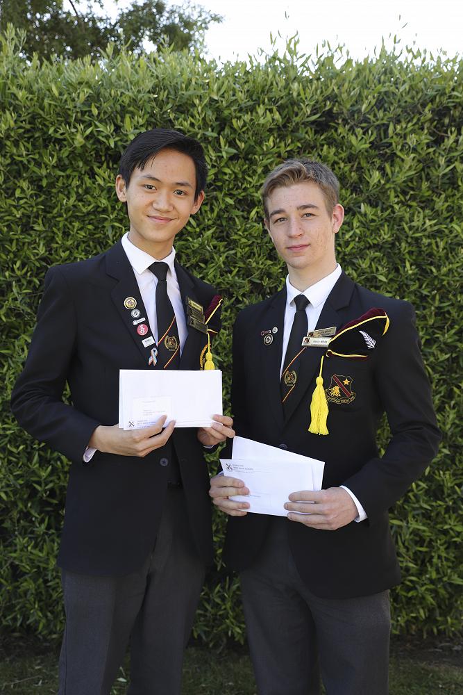 New Zealand Honours Caps awarded for being accepted into the Young Shakespeare Company in 2022 where they will represent New Zealand at the Globe Theatre in London: Matthew Lee and Harry White.