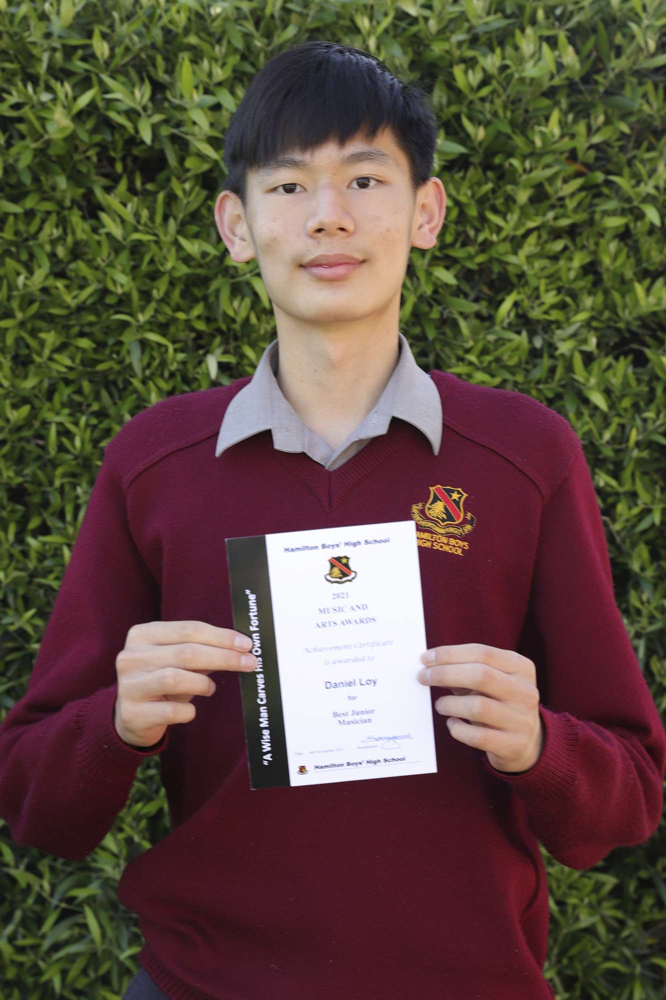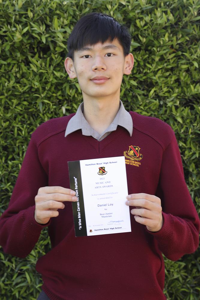 Achievement Certificate for Best Junior Musician to Daniel Loy