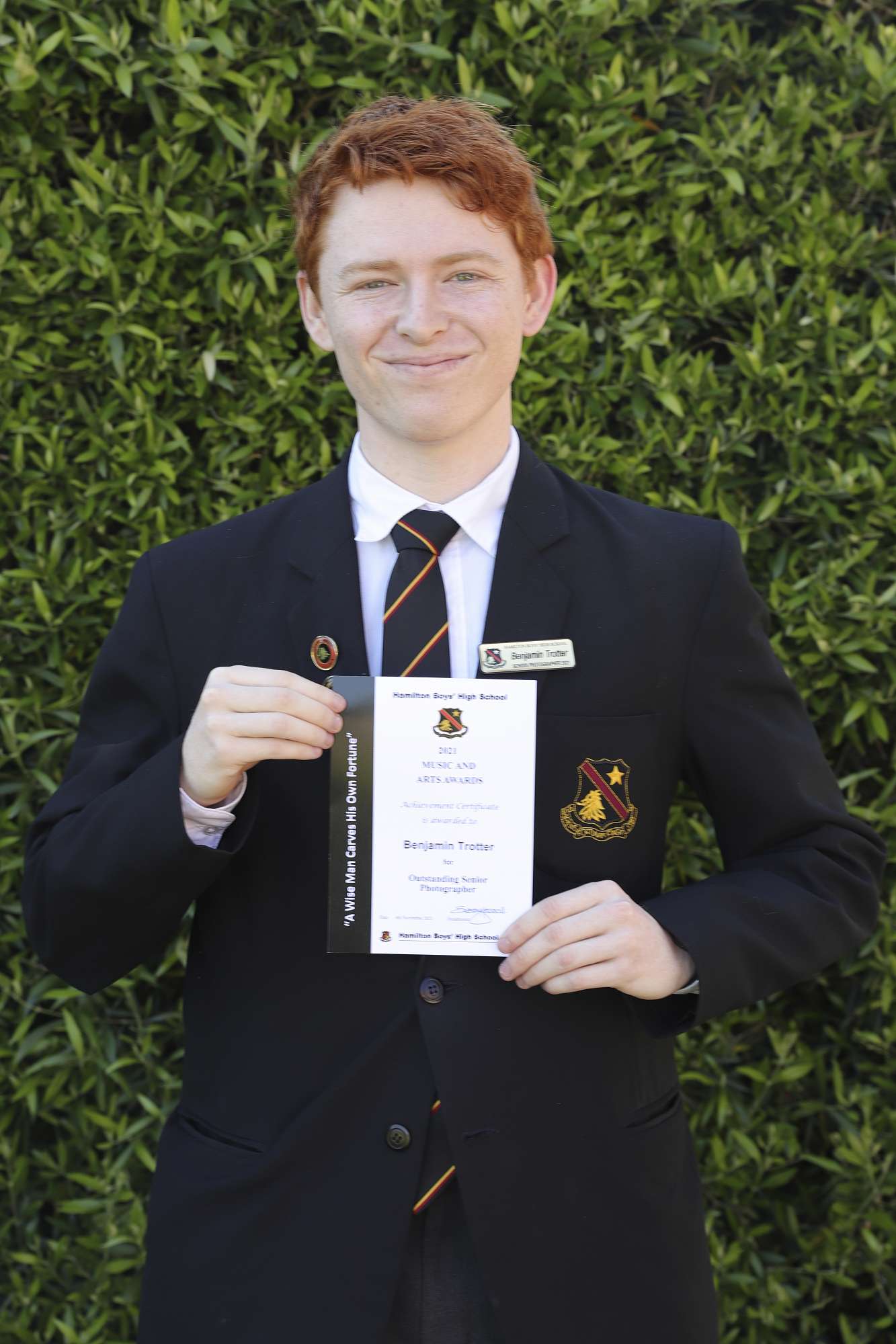 Achievement Certificate for Outstanding Senior Photographer to Ben Trotter
