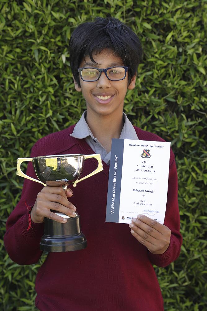 Thomas Simpson Cup for Best Junior Debater to Ishaan Singh