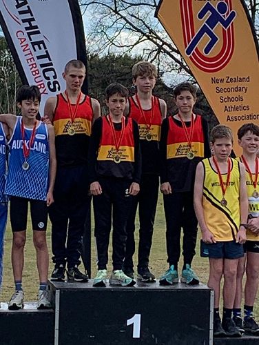 The Year 9 team of Jack Stirling, Max Stirling, and Jacob Liu represented HBHS at the New Zealand Secondary Schools Cross Country Championships on the 15th and 16th of June in Christchurch. The boys had a wonderful weekend with the following placings, Jack 5th, Max 6th and Jacob 23rd. This resulted in HBHS winning gold in the Year 9 Boys' team event.