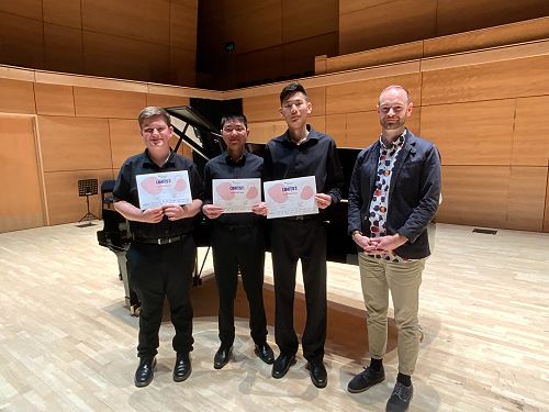 Seitz Readers, our piano quartet which was formed late in 2022, also received high recognition for their performance of a work by Friedrich Seitz at the Waikato District contest, taking one of the few Highly Commended Awards (the contest does not award runner-up prizes). Congratulations to John Huang (piano), Amos Robinson (cello) and William Zhang and Samuel Xia (violin) on their achievement both on stage, and in the degree of growth as chamber musicians in such a short time.