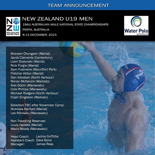 Congratulations to Elijah Singleton on his selection to the NZ Under 19 Water Polo Team!