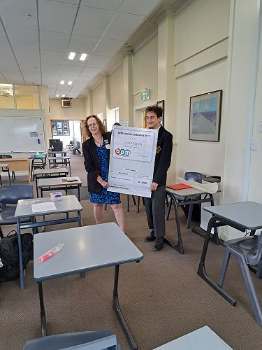 Year 13 student Josef Gillgren was announced as the winner of the Geoff Lealand BPM Student Challenge on Monday at the last Prefects meeting for the year. Josef was presented with his $1000 individual prize by Geoff's widow Josephine Maplesden, who commended him on his insightful and perceptive commentary on crime reporting in the New Zealand media and why it is essential to think critically about what we see on the screen. Along with his individual prize, Josef has won $500 for the HBHS Media Studies department, which is very proud of what this talented student has achieved!