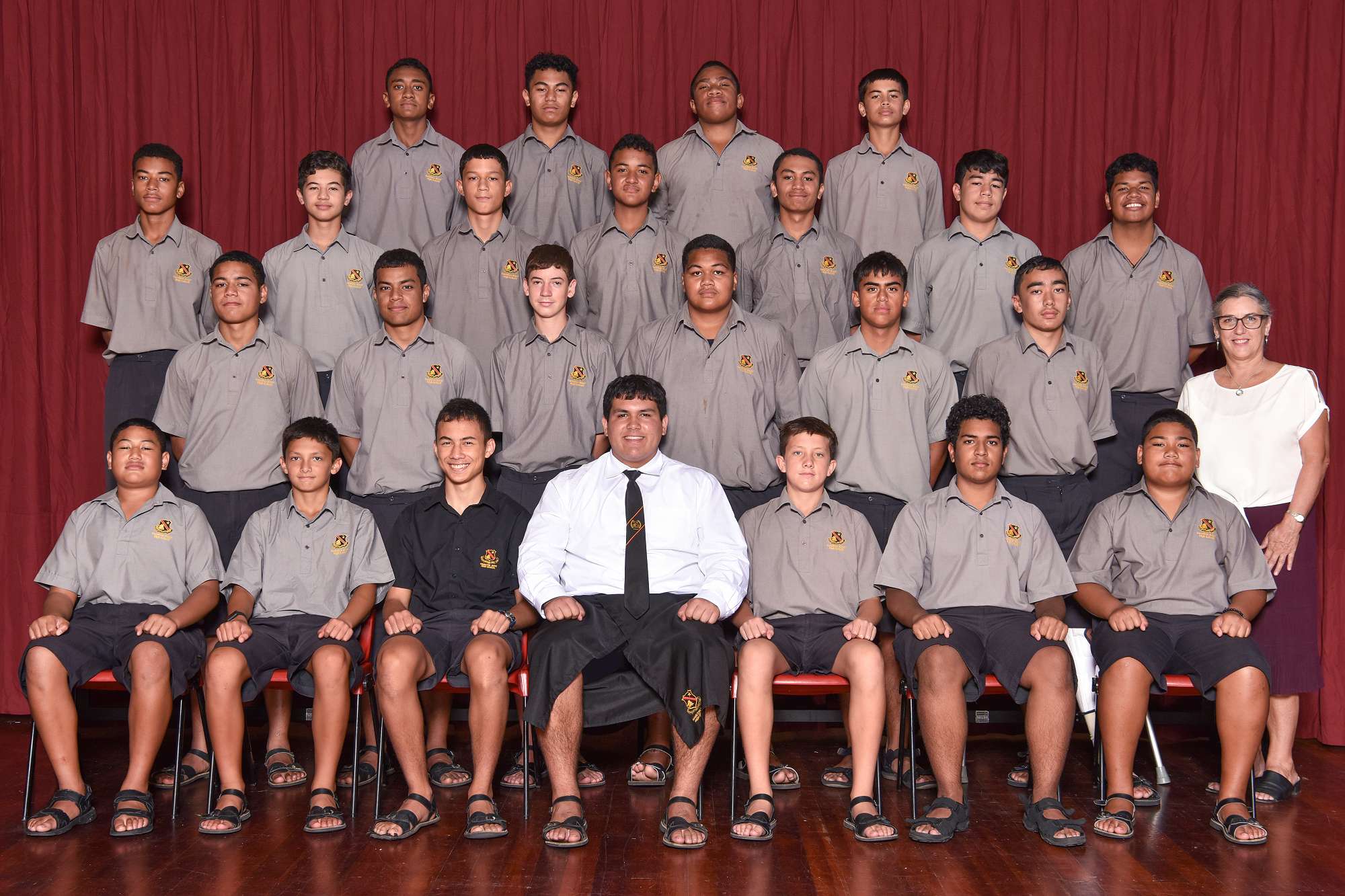 Second Row: Matthias Alaimoana, Niko Harris, Tama Hemi, Viliami Fifita, Julius Ale-Kaitai, Lome Djohanli, Oliva Cowley (Teacher)