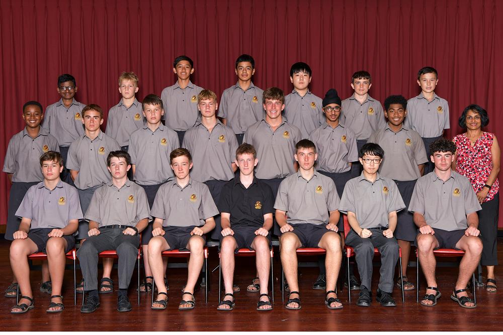 Second Row: Joel Gurnell, Dylan Brown, Chris He, Marcus Coombes, Carter Gregan, Mattheus Vargas Moreira, Braiden Gilmour, Dwight Ashton (Teacher)