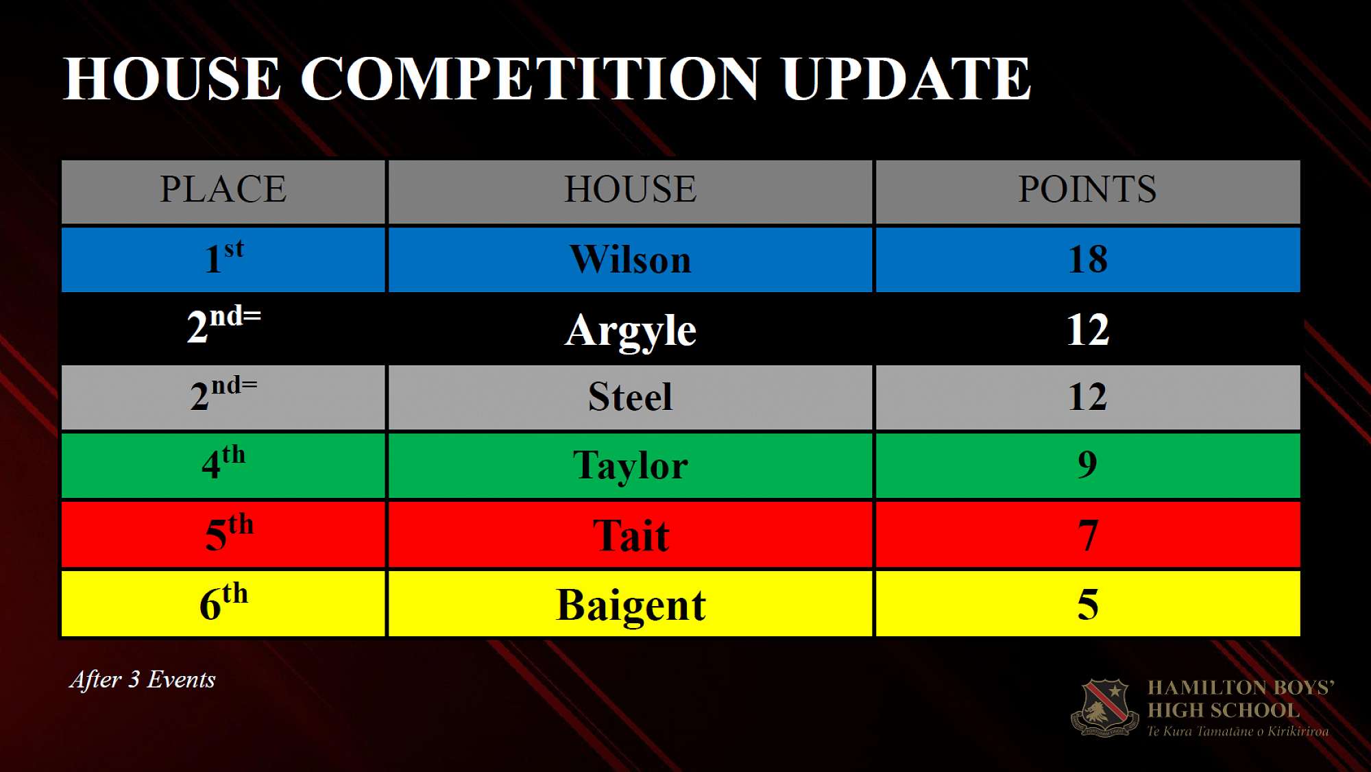 With COVID restrictions meaning that there could be no spectators, our regular pilgrimage to Porritt Stadium was for finalists only in 2022. This meant it dropped from a major to a minor event in the House competition, but with the House competition only getting started, all points are important. In the end it was Wilson House who came out on top, only just pipping (the mighty™) Argyle House courtesy of their strong performance on the track. Argyle dominated in the field events, and Taylor and Steel followed closely behind. Tait's performance on the track helped them to finish above a hapless Baigent, who find themselves with a long way to go at this point. Congratulations to our age group champions, and thanks to our HPW Department for running this event.