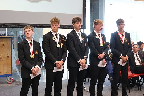 Cooper McLean, Jayden Calland, Hudson Rillstone, Nicholas Bourne, Gaebriel Gamble, Caleb Lannam, Jack Dryden, Bennett Mareroa, and Tory Arnold (coxswain)