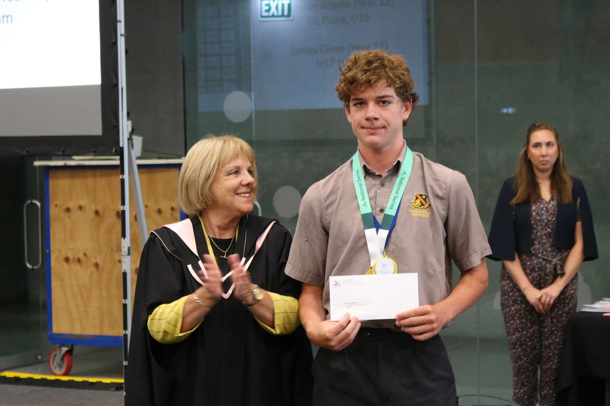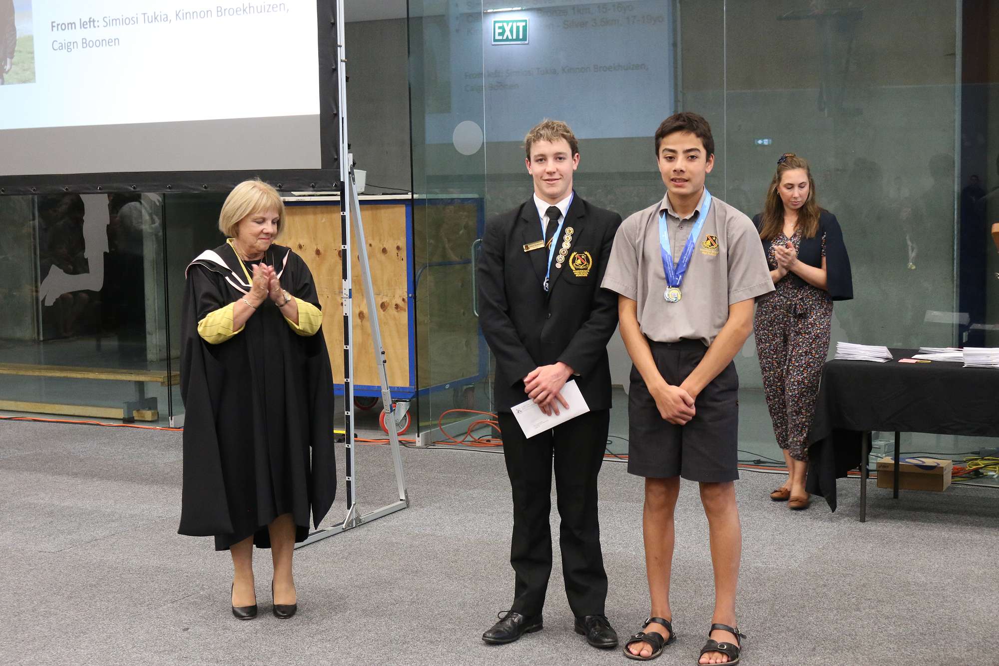 We had three students competing in the National Championships over in Rotorua at the Blue Lakes. Year 10 Simiosi Tukia, swimming in the junior age group, won a National title in the 500m event as well as silver in the 1km swim. Year 11 Caign Boonen, swimming as an intermediate, earned a bronze medal in the 1km and Deputy Head Prefect Kinnon Broekhuizen won a bronze medal in the senior 3.5km event. Kinnon received his honours badge for finishing third in the country.