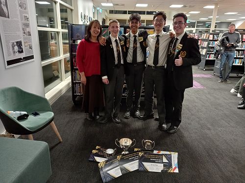During the year we have had 8 teams in our local schools’ competition run by the Waikato University Debating Society. Two teams made it to the semi-finals of the Premier Grade. Unfortunately the team of Hamish McKelvie, Josef Gillgren, Cam Sundararaj and Daniel Dizon did not continue to the finals. Our other team of Levi Pruden, Hitesh Malhotra, Jovan Xin, and Campbell Wood took out the final against St Peter's School Cambridge and won the Senior Premier Grade Cup. Levi Pruden, Alexander Mayo and Ishaan Singh received Top Speaker Awards. Hitesh Malhotra and Wyatt Winke received Diligence Awards. Levi Pruden was recognised for his services as Adjudicator for the Junior competition.