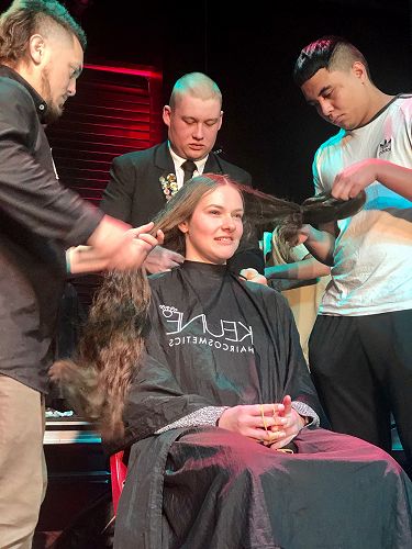 There was a festival atmosphere in the Hall on Friday, as our brave staff and students answered the call to Shave for a Cure.