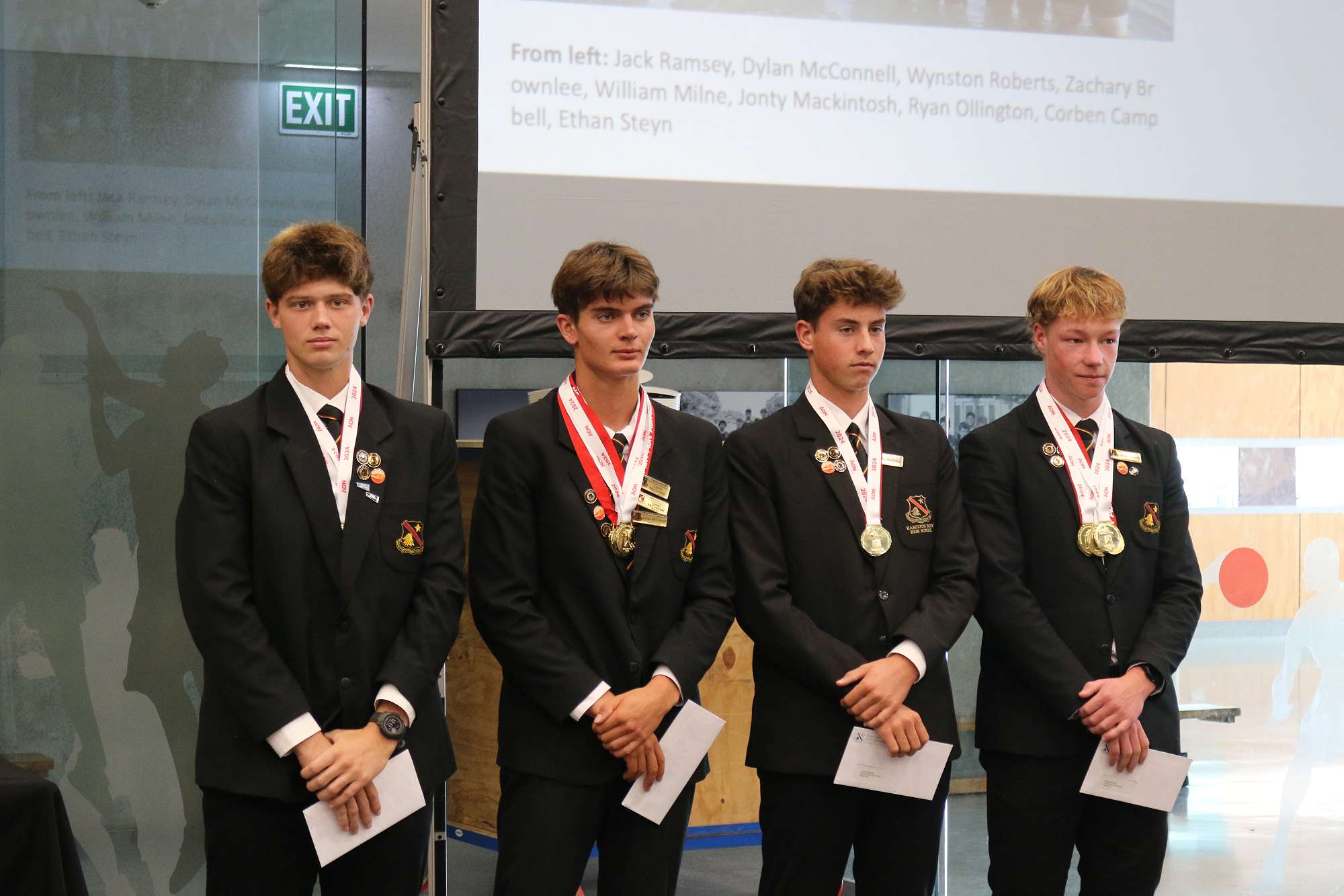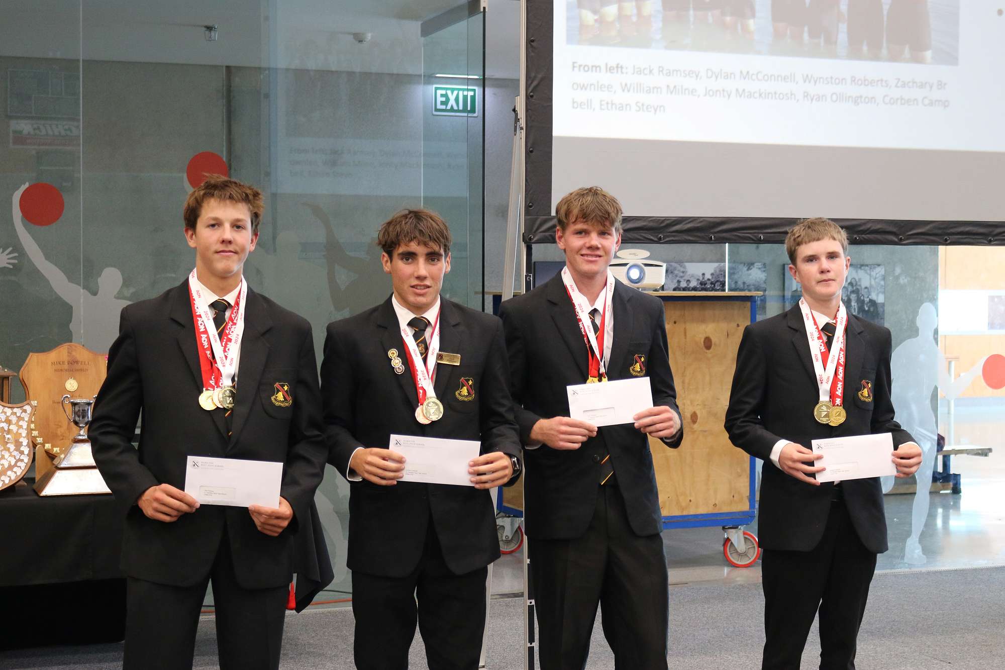In rowing, a badge is earned by rowing for a season in the Under 18 Eight at both NISS and NZSS. The following boys have earned their first team badge this season: Corben Campbell, Jack Ramsey, Wynston Roberts, and Ryan Ollington.