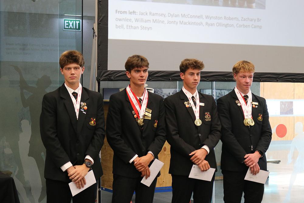 A First Team Cap is earned in rowing by being a member of the Under 18 Eight at both NISS and NZSS levels for two years. The following boys have earned their honours caps: Zachary Brownlee, Jonty Mackintosh, Dylan McConnell, and Ethan Steyn.