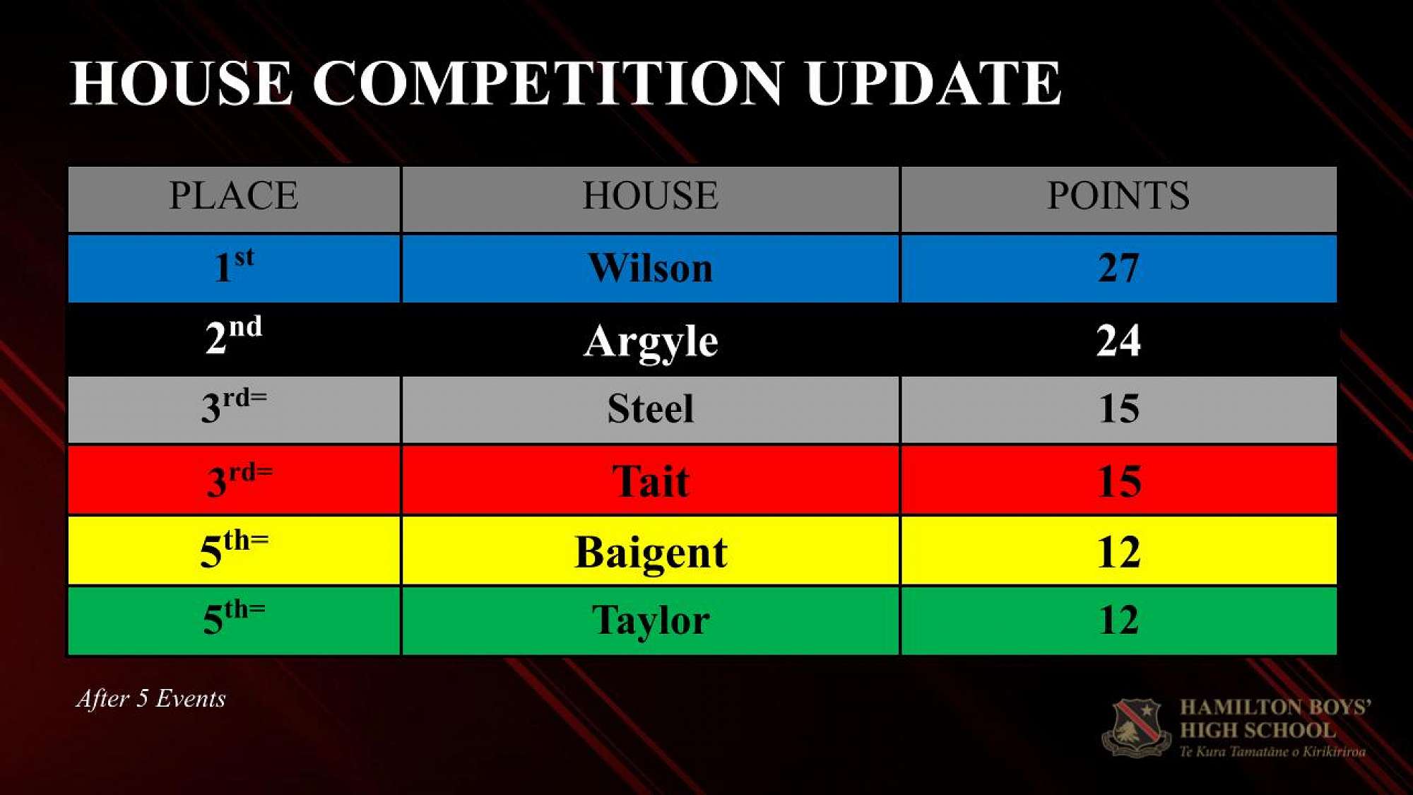 There is still much to play for this term in the House Competition, with House Volleyball underway, and Tug-O-War, General Knowledge, and Basketball to come this term.