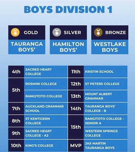 In the final, we lost to Tauranga Boys' College 10-14, which placed us second overall.