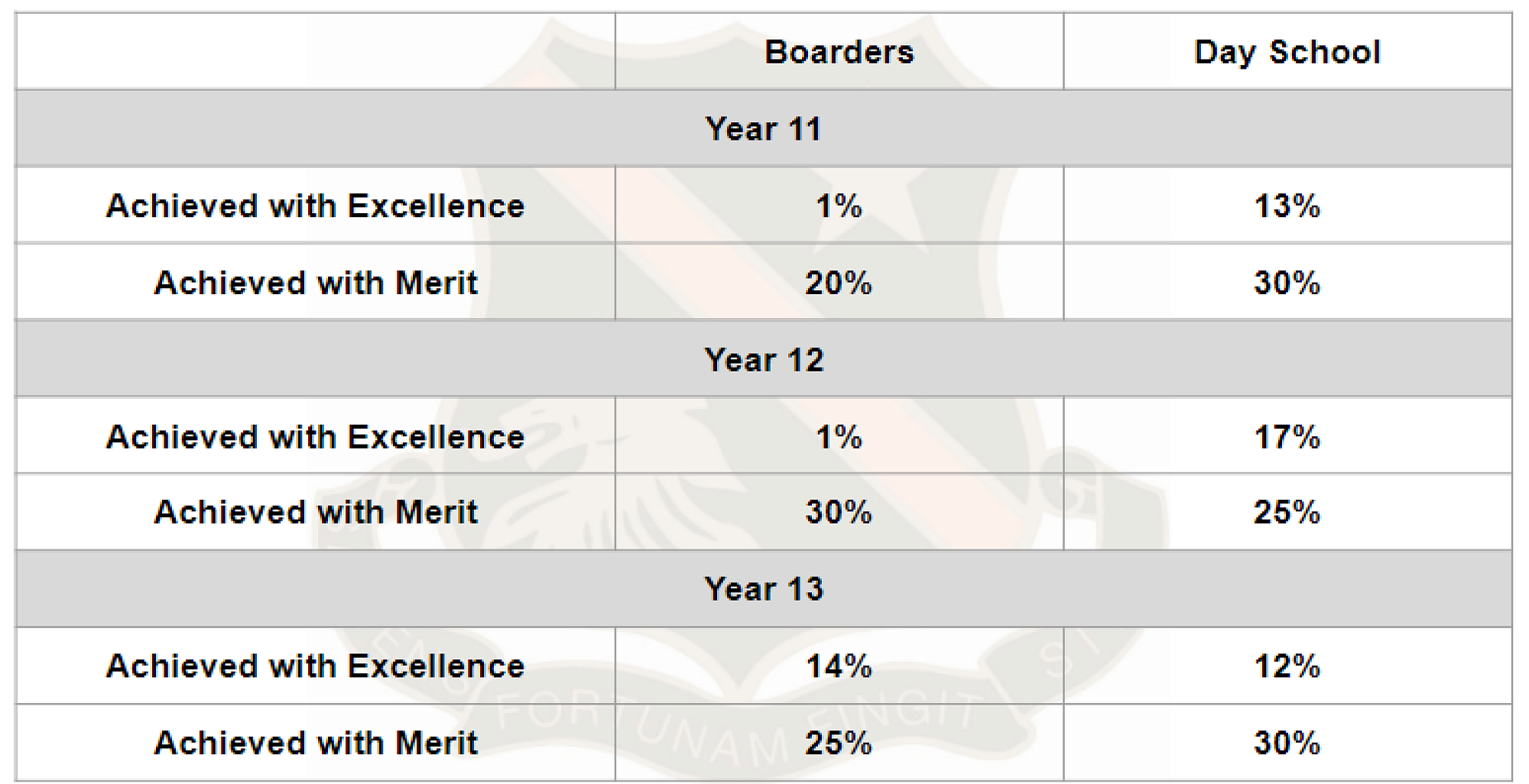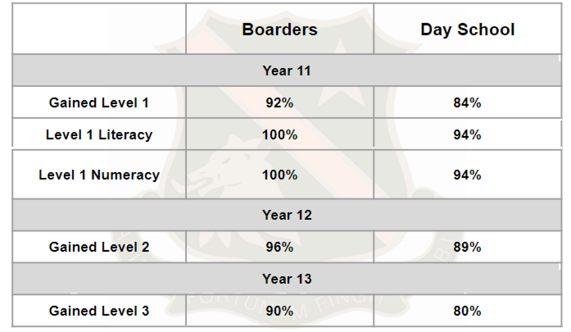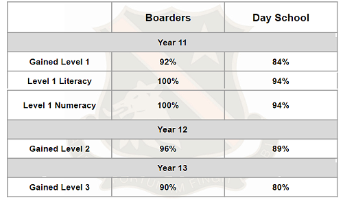 As you can see from the image above, our boarders were able to achieve a pass rate of 92%, 96%, and 90% in Levels 1, 2, and 3 respectively. When we compare these results to those in the day school (where students were able to achieve 84%, 89%, and 80% at the three levels) it is pleasing to see that we are performing beyond even their high standards.