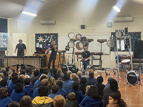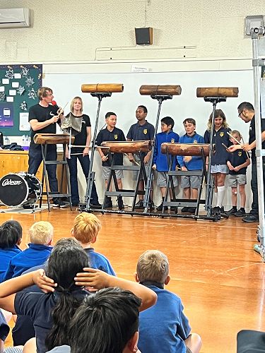 Strike Percussion Performance: Our students were delighted by this traveling percussion performance group. They used a range of drums, xylophone and even violin. This performance was interactive, with audience participation including teachers Miss Leonard and Miss Hensman!