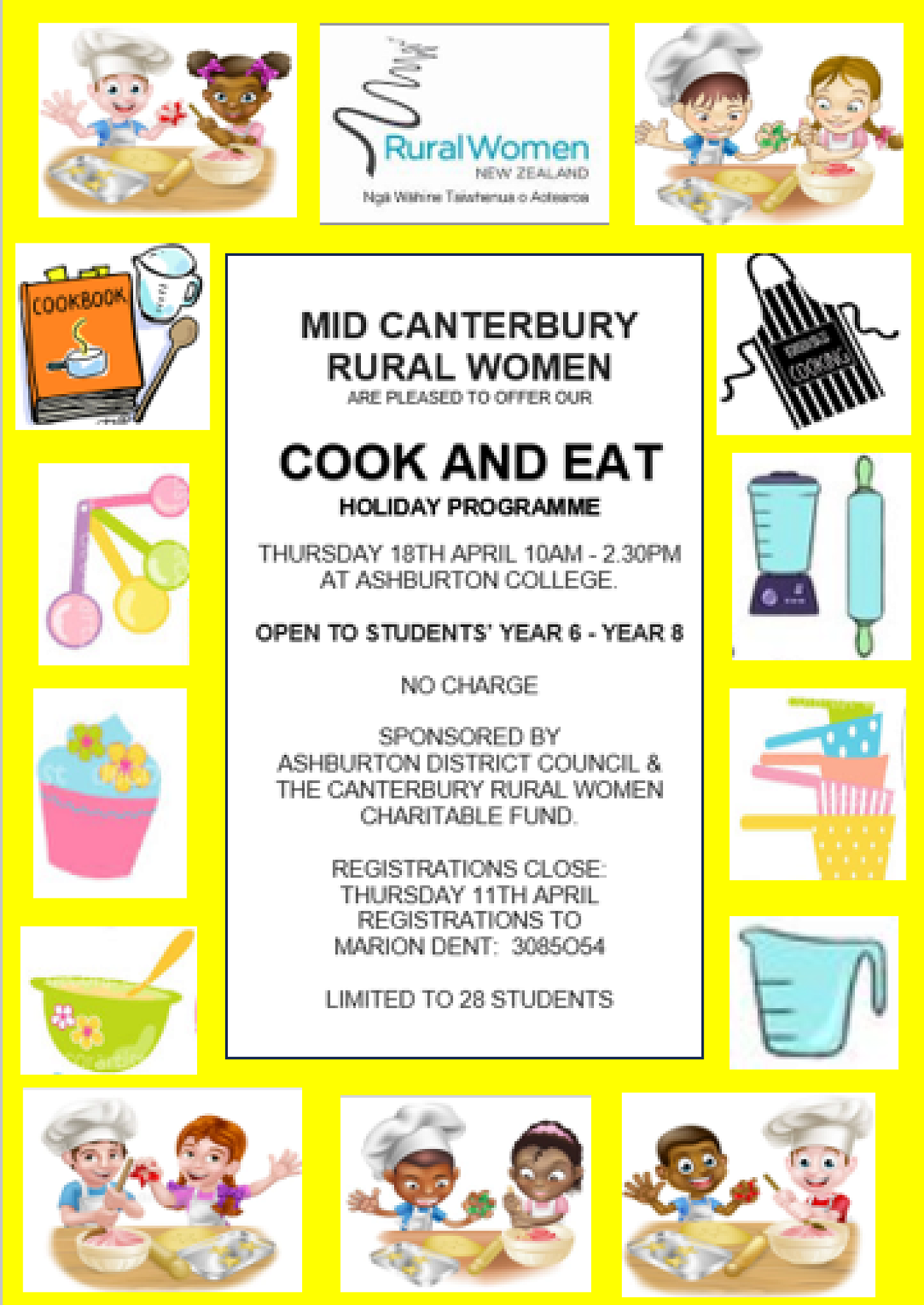 Kai for Kids: During the school holidays in April, Kai for Kids are going to open up the kitchen for lunch for any students of Hampstead School and their whanau. The kitchen will be open each week day over the holidays between 11.00am – 12.30pm. This kai is available at no cost to families. Kai for Kids is located at the Ashburton Racecourse on Racecourse Road. Follow the Kai for Kids signs once at the racecourse building.