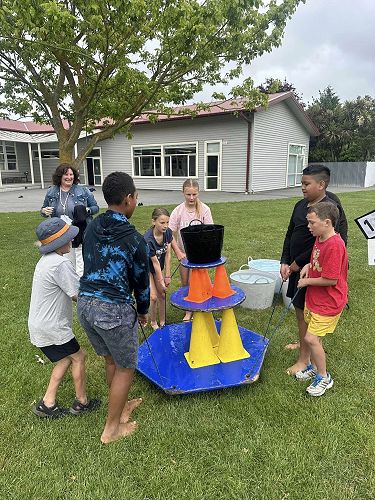 Top Team: Our Yr 5/6 had a blast and got pretty soaked when Sport Canterbury brought the Top Team van out. These fun physical challenges provide lots of activity, team work and problem solving.