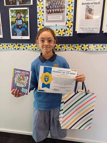 Student of the Week: Natalia (Rom 13) is a kind and bubbly student who gives everything her best shot. She arrives each day with a huge smile on her face and full of enthusiasm, ready to tackle whatever comes her way. Natalia is a wonderful friend who always welcomes others to join in and is always willing to lend a helping hand. She approaches all tasks with determination, even when they're challenging, and it's a joy to see her face light up when she accomplishes something she found difficult. Room 13 and Hampstead School are lucky to have you, Natalia! Keep shining bright! Kora-Lee (Rm 11) is an amazingly caring and helpful student who does everything to the very best of her ability. Kora always works well with others and appreciates everyone for what they can bring to the class. She is very diligent, has a positive attitude to learning and is always organised and keen to take on new challenges. Kora is a great learning buddy, always demonstrates our School values, shows strong leadership and is a strong role model. Keep on being you Kora, you are a shining star in Room 11.