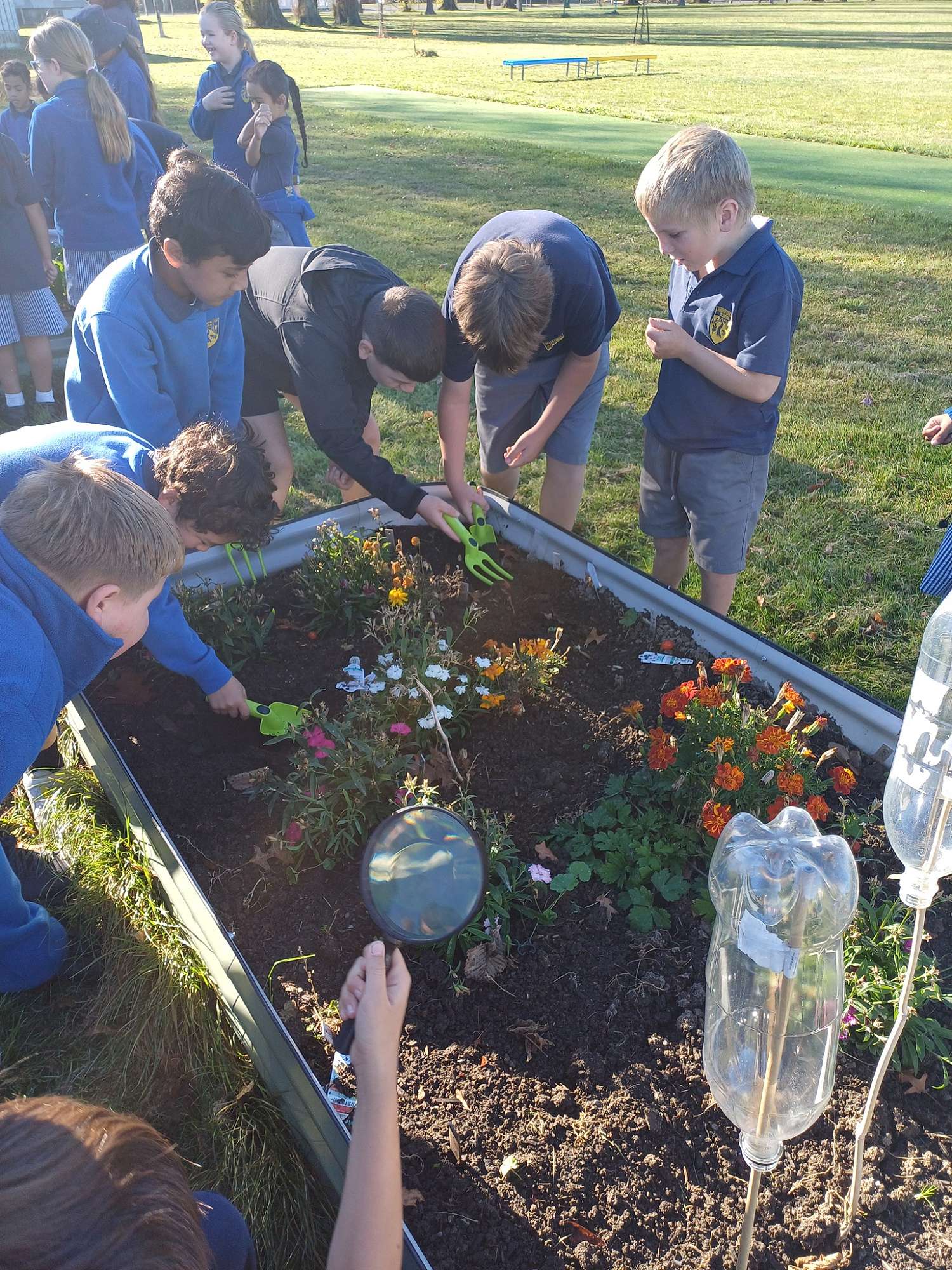 "What lies beneath?" Our inquiry into "what lies beneath"? has had classes investigating a range of creatures. On Friday buddy classes Room's 13 & 6 spent some time searching in the vegetable gardens for worms. After doing some digging and searching with magnifying glasses we found a range of different bugs. Students from both classes loved finding them and some were even brave enough to kindly hold them, and then return them safely to their habitat.