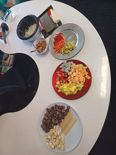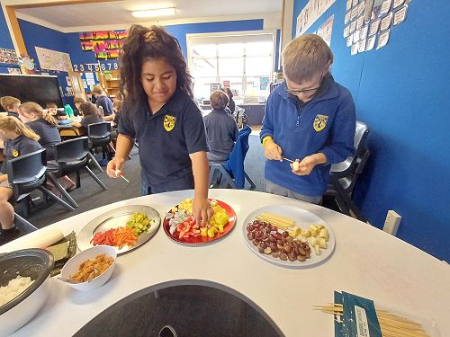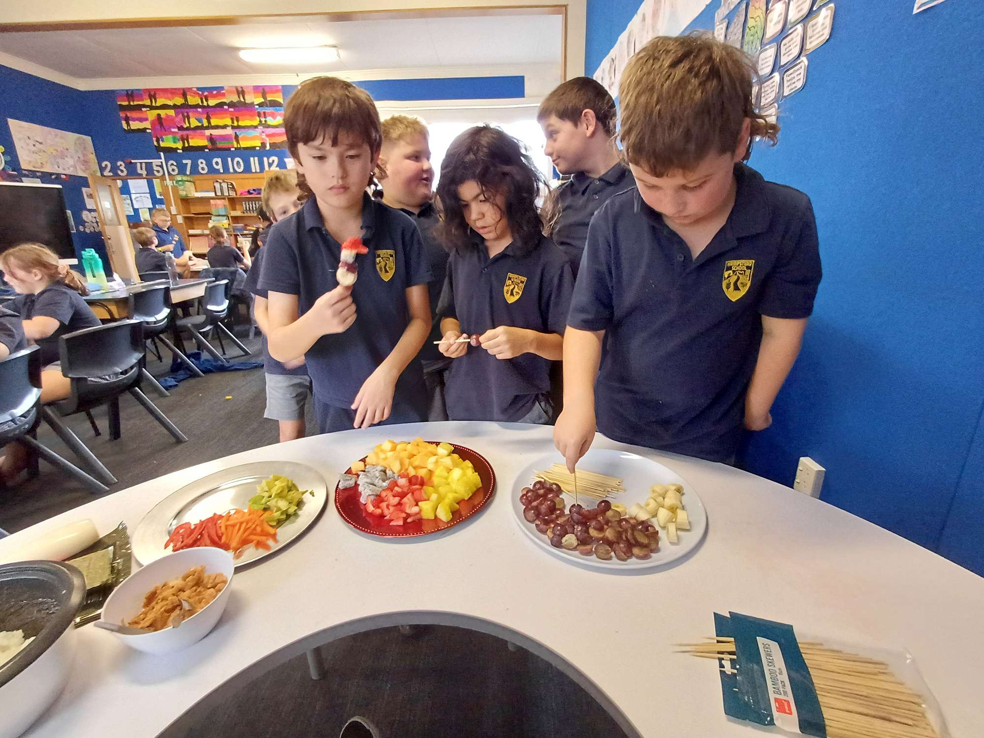 Here are some photos of Room 12 with the snacks that they got from their $60 New World voucher. The children had great fun eating the fruit kebabs and making mini sushi rolls.