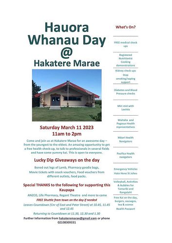 Whanau Day @ Hakatere Marae: Saturday 11 March, 11-2pm