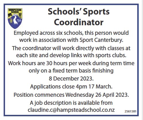 New Appointment: Next term we welcome Miss Brooke Hensman to Hampstead School. She will be taking over from Mrs Crossen in Room 13. Miss Hensman grew up in Mid Canterbury and has spent the last few years in Australia. She will release Mrs Crossen on her release day later this term, so the children will get to know her before the holidays.