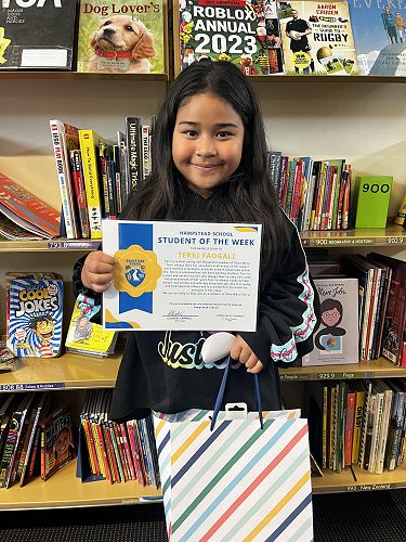 Student of the Week: Eddie (Rom 5), you are a valued member of the classroom community. Your kindness towards others and caring nature make you a wonderful friend to those around you. You demonstrate pride and respect in upholding the school's values. Eddie, you are very conscientious and hard working and I love how you always strive to be the best you can be with your work and how you treat others. You are a great role model and a pleasure to teach. Room 5 are extremely lucky to have you as part of our class. Eddie, you are a star! Terri (Rm 8) is a kind, caring and thoughtful member of Ruma Waru. Terri always does her very best in all areas of her school work and has a fantastic attitude toward school and school life. She is a conscientious and hard working student. Terri is a neat and careful worker who always likes to take care with the presentation of her work. Terri is always ready to help others and to help out with any classroom job. She is friendly and kind towards others and is a wonderful role model for everyone in the class. We are so lucky to have you as a member of Rima Waru Terri!