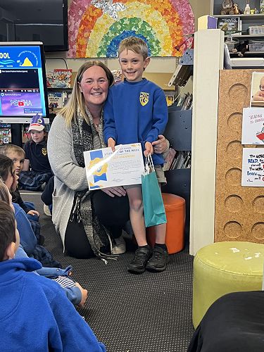 Student of the Week: Tait of Rm 5. Tait is a responsible and hardworking student. He is a good friend who shows caring, kindness and understanding towards others. Tait takes a lot of pride in his work which he presents to a high standard. He is keen to learn and gives everything a go with a quiet enthusiasm. Tait you’re a valued member of Room 5 along with being a superstar. We enjoy having you in our class!!!