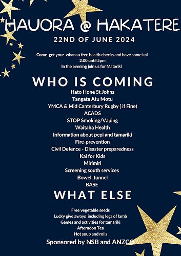 Coins for Kids: On Tuesday 25 June, Kai for Kids are fundraising. They will chalk out some stars on our courts for a coin trail. Please send along any coins you can spare for the children make this coin trail a big success. We are incredibly grateful to Kai for Kids. They not only feed our children healthy morning tea and lunches, but the go above and beyond for all our community events such as Matariki Night, Cross Country, Athletics days and more. We are lucky enough to have Anna from Sport Canterbury along with the YMCA joining us in the afternoon to lead is into some fun games. These will be taken in two lots, we will have the Juniors first followed by the Seniors. This all connects to our school being part of a healthy, active, learning environment.