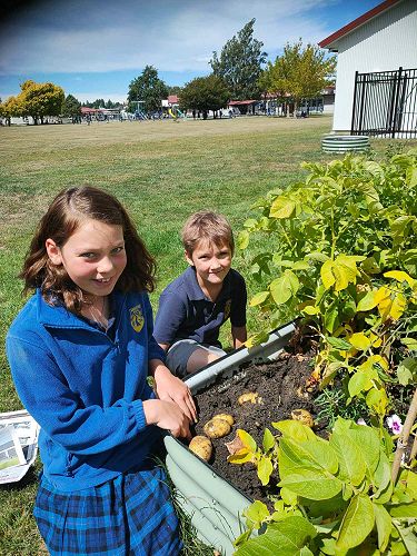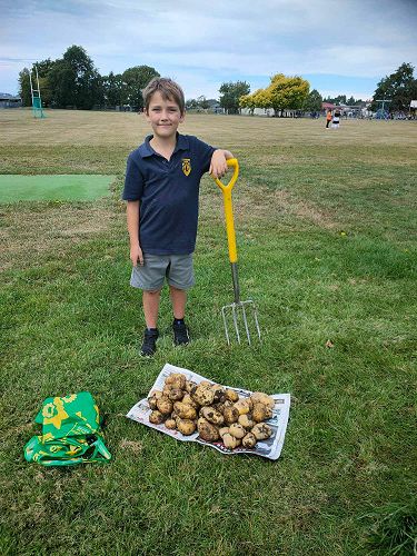 School Vege Gardens: The school gardens have grown well over the summer! Last Friday Mrs Eaton and some keen gardener harvested one lot of potatoes. We were surprised with how many potatoes were under each plant. We sent the potatoes back with Kai for Kids to use in our lunches this week.
