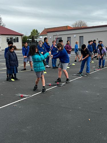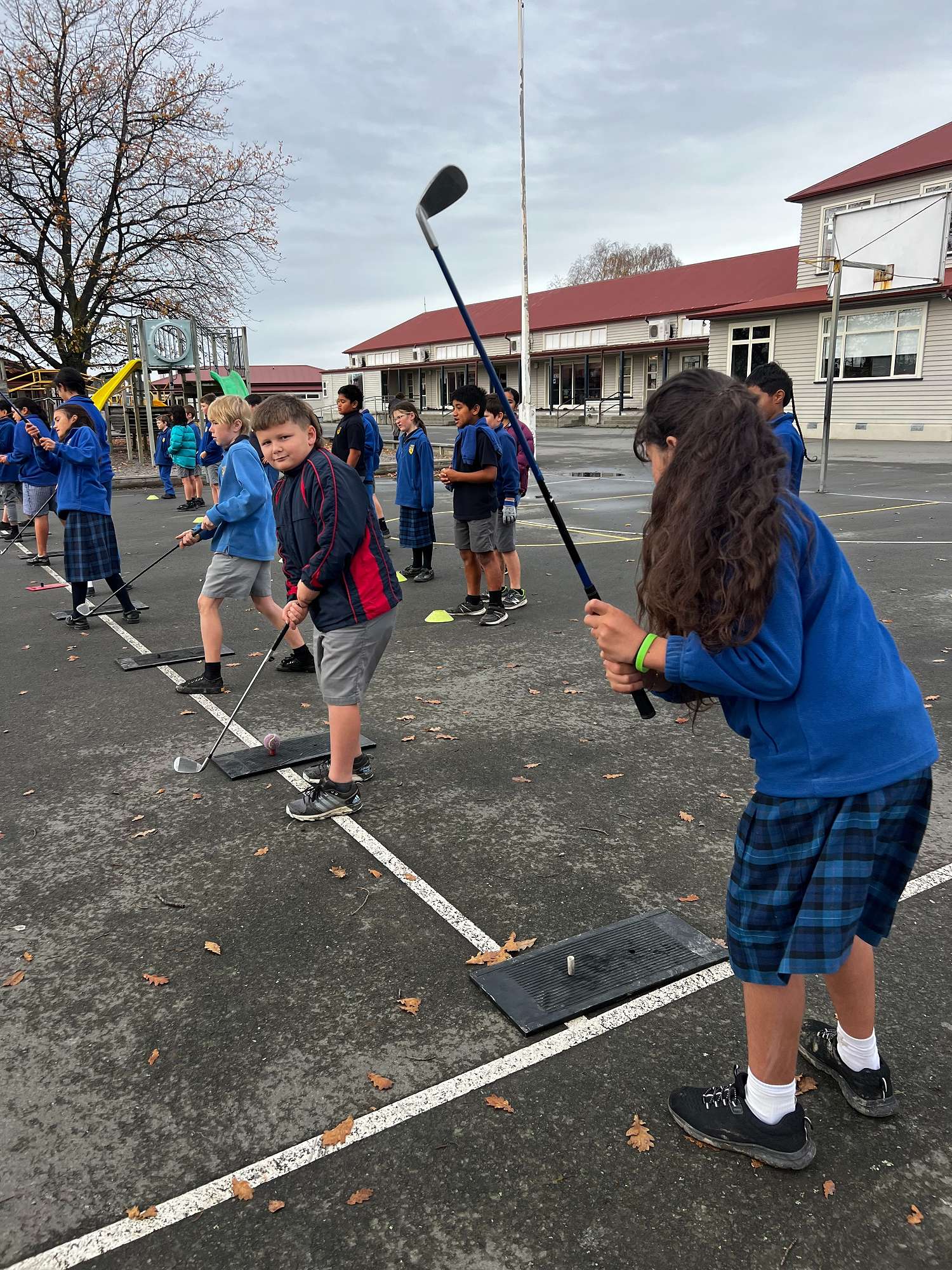 Golf: For the last 4 weeks we’ve had Matthew Davis from Ashburton Golf Club come and teach our 4-6 classes about grip, posture, stance and different angles of swinging.