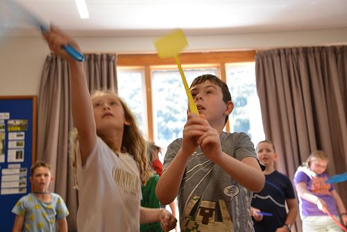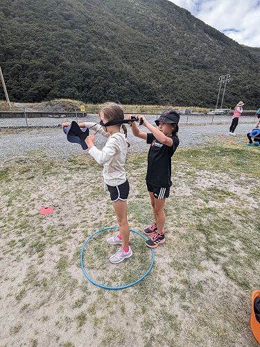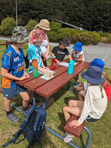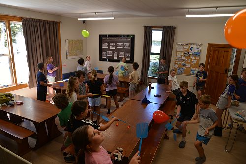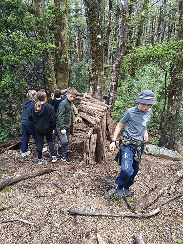 Mr Campbell had planned for all possible situations and catered for our earlier arrival at camp but setting up activities in the township related to the learning the children had been doping around kea and introduced pests, as well as some fun group challenges. This kept everyone busy until lunchtime.