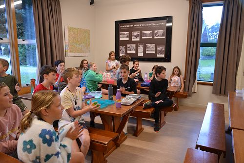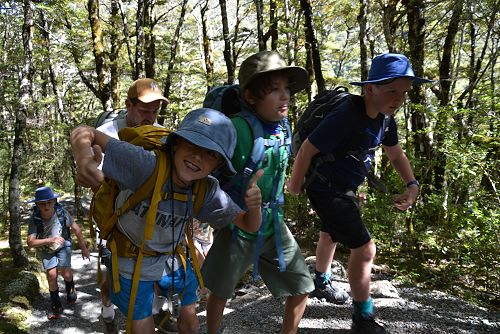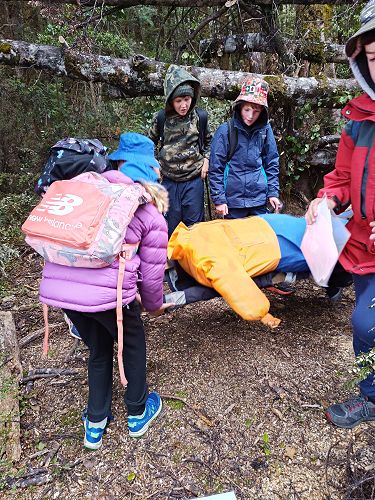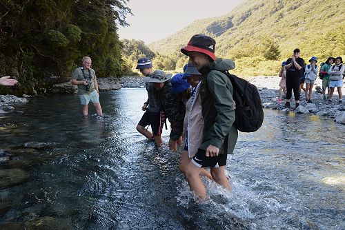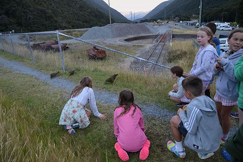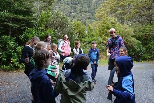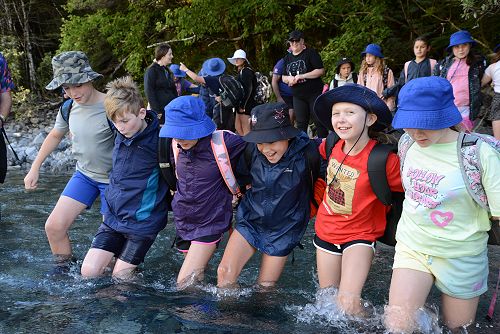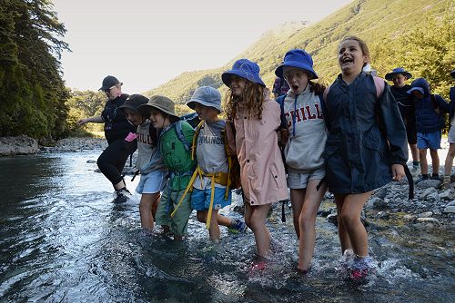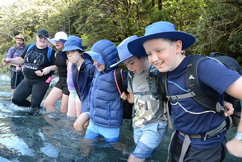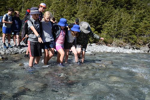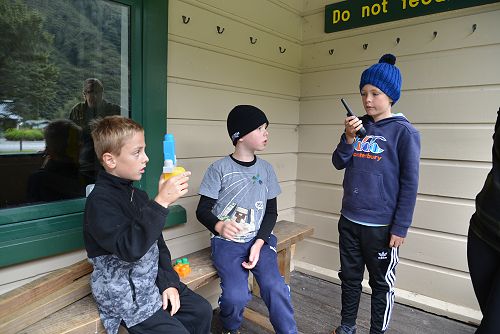 After breakfast on Thursday groups had two more activity rotations - search and rescue and UHF radios. This took us to lunch and the much anticipated Devil's Punchbowl walk and river crossing. Several children had been worried about these activities, especially the walk up the hill as, while it's not a long hike, it is reasonably steep. We were so proud of all of our children as they all made it to the top and back down. They also took on the river crossing with confidence. Thursday was a busy day, but after dinner, complete with a delicious chocolate self saucing pudding compliments of Mrs Higgins, there was still plenty of energy left and we were able to go across the road and watch the antics of a group of playful teenage kea!