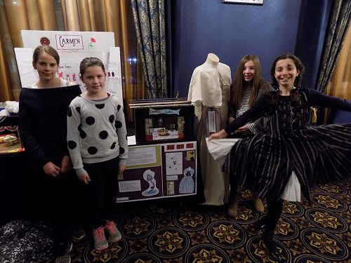 We met in the foyer, a great chandelier hanging above us. After streaming upstairs to the First floor, we noticed the Opera workshops exhibition. Each presentation consisted of a costume, a miniature set, and an accompanying poster that explains the story and inspiration of the design. South Christchurch Intermediate School created a slightly altered Carmen where she works at a Casino called Cloud Casino. Heaton Normal Intermediate School presented the Carmen story set in Scotland. Carmen there works at a tweed factory rather than a cigarette factory. We even translated the name Carmen to sound more Scottish. Candice the Scottish lass she is!