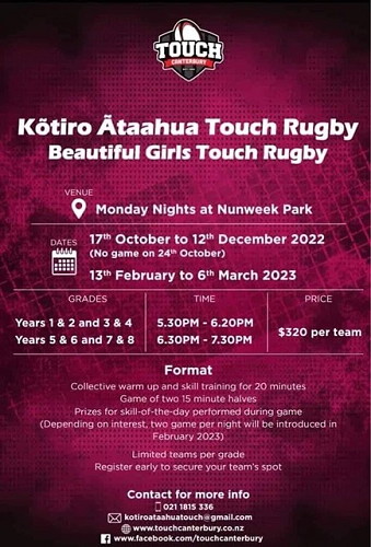 Please note that Kiwisport numbers will be restricted to 32 in the group.