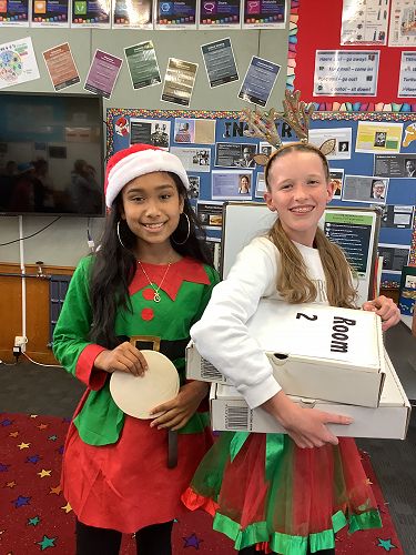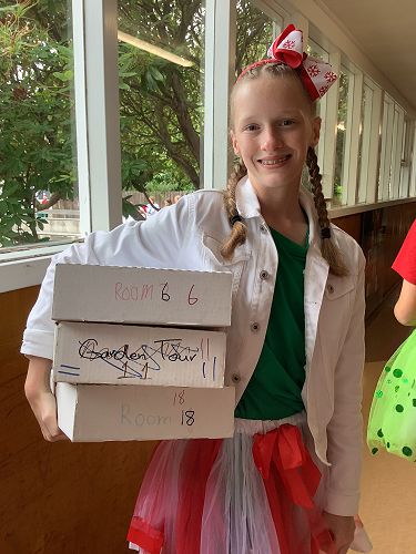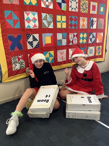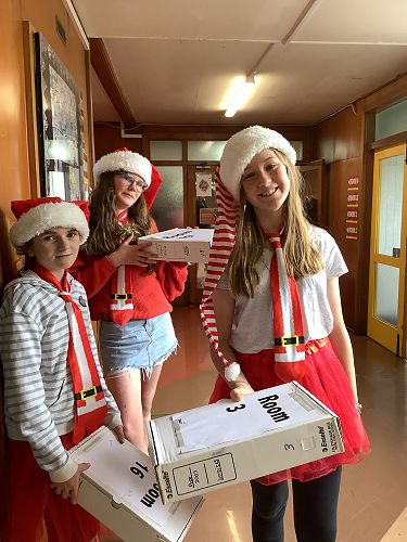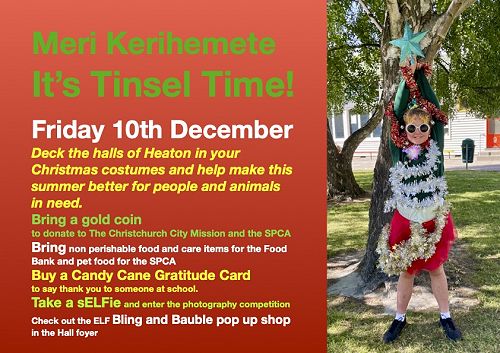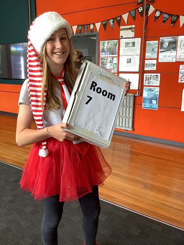On Friday, 10 December students and staff were invited to dress in their decorative best and bring a gold coin for charity. In addition to this the Art Room Elves had been busy organising Candy Cane Gratitude Cards. In return for a gold coin, students and staff were able to express their gratitude to a friend or colleague who had supported them throughout this last year. Their message would be written by an elf in an elf-made card, a candy cane attached, and then delivered to the sound of sleigh bells to their classroom or the staff room. Elves also ran a jewellery stall and sold elf-made porcelain ceramic decoration. Food and care items were collected for the Christchurch City Mission Foodbank and the SPCA. Khyla Room 10 and Zoffya Room 7 helped take the 486 items collected to the Foodbank. The Elves also sent a Candy Cane Gratitude Card to the staff at the City Mission thanking them for their work all year long. 41 items were donated to the SPCA.
