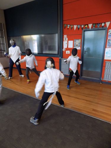 Fencing at school is a very fun experience. Diane, our coach, talked to us about 3 different techniques; foil, epee and sabre. All of us started to learn foil, because it's the lightest.