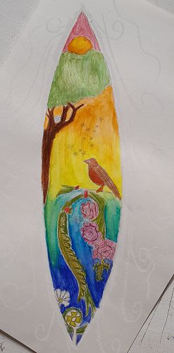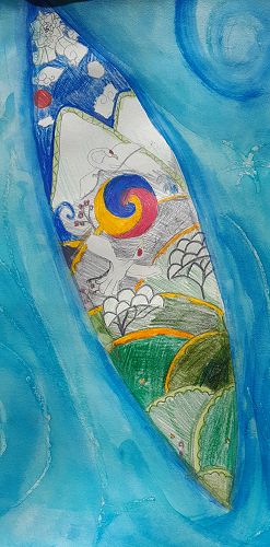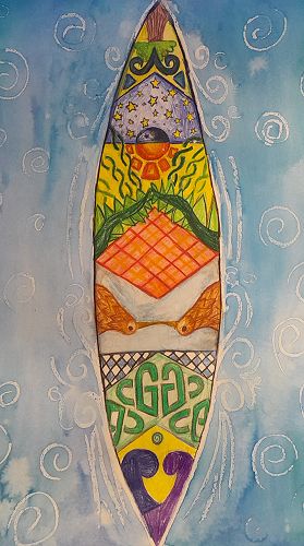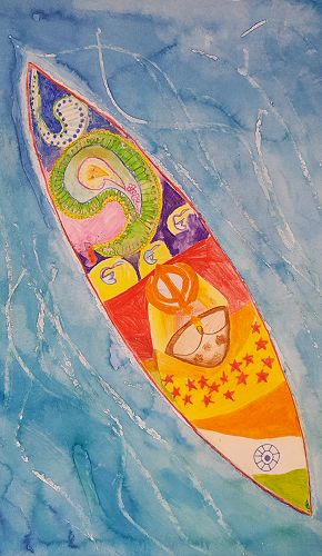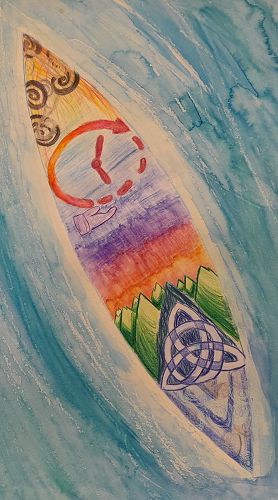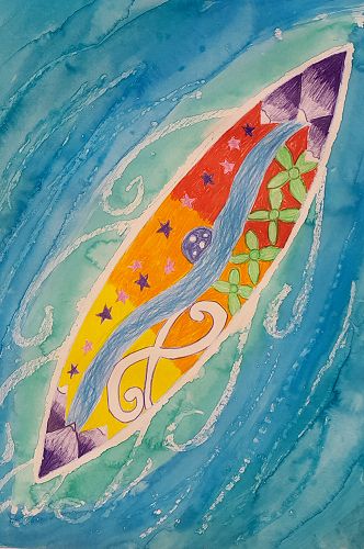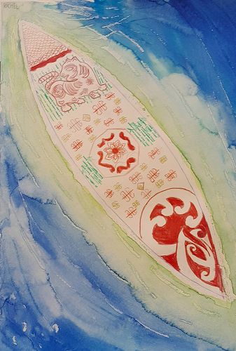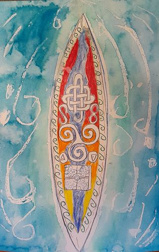 Year 8 Heaton Visual Art students designed their own "Waka of Wellbeing" to carry them forwards in life to Secondary School and onward, supported by their family and cultural heritage while looking ahead to future challenges and aspirations.J