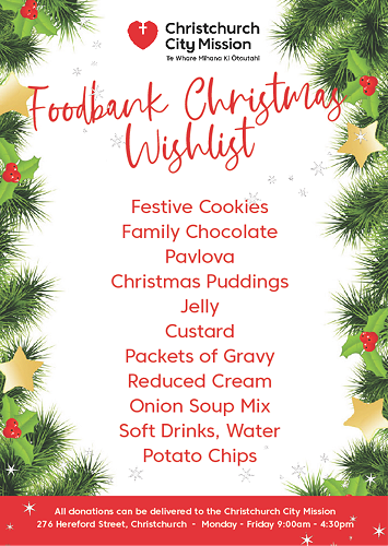 The art elves and the Student Council will also be collecting for the Christchurch City Mission Food Bank. Please be generous and help bring some edible festive cheer to those struggling this year.