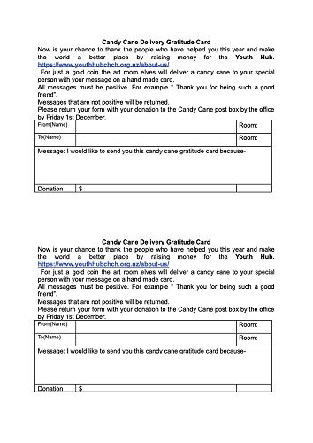 On Friday December 8th we will have a dress up day. The day is to show our gratitude for what we have and celebrate with the people around us. So, adorn yourself with your finest jingle and bells and bring a gold coin for Youth Hub. This is an amazing facility being set up by Dame Sue Bagshaw. 'The Youth Hub creates a safe haven for young people needing support between 10 and 25 years of age. It is a collaboration of co-located services that gives opportunity for young people to grow in an environment of encouragement and positive social engagement.'