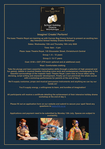 Canvas Bag Drama School commences Term 3 drama classes on 20th July. In Term 3 they will be casting parts and rehearsing for the production in November, so it’s a great opportunity for children to be in a real live stage show! The classes are located in Merivale and combine a structured fun-filled social environment with extensive use of improvisation and role-play to develop positive feelings of self-worth and the ability to confidently express thoughts and feelings. Canvas Bag Drama School offers a free first-class trial.