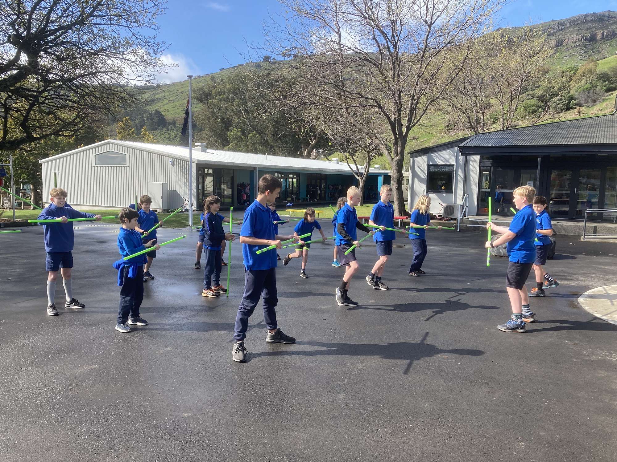 One of the highlights of being back at school is seeing the tamariki interacting with each other both in their class work and out in the playground. Yesterday I had the pleasure of, trying to, join in with the kapa haka boys as they practiced taiaha, led by our two Kaitiake Tane; Flynn, and Mac. What amazing knowledge and leadership skills our tamariki are developing.