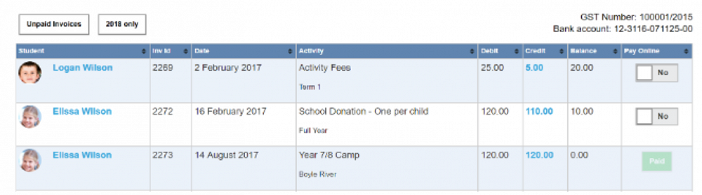 To pay the balance of an invoice, simply click the 'Pay Online' slider to 'Yes'. NB: You must pay the full remaining balance.
