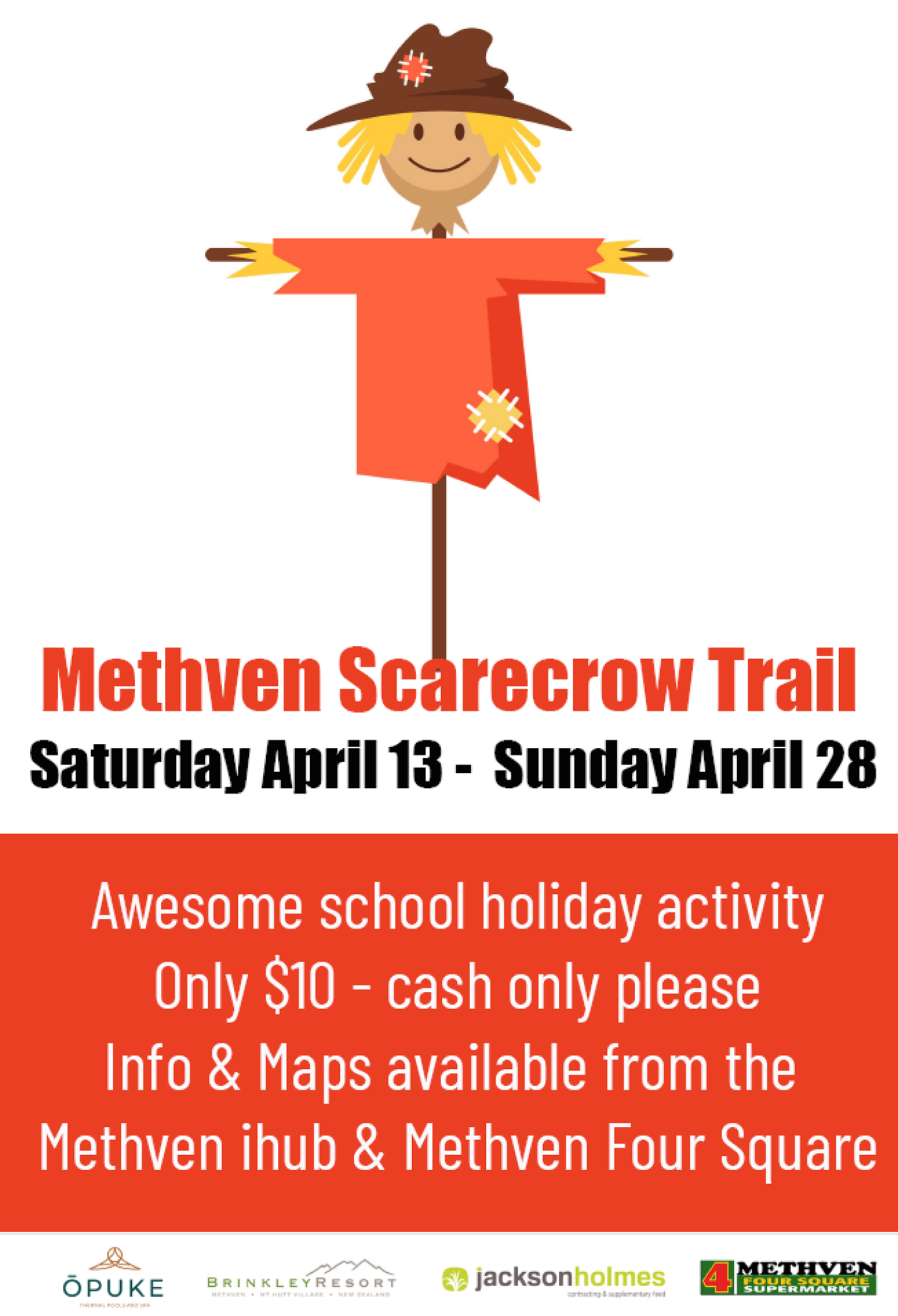 The Methven Scarecrow Trail is a hugely popular and fun family event run in the April school holidays. It is suitable for all ages!