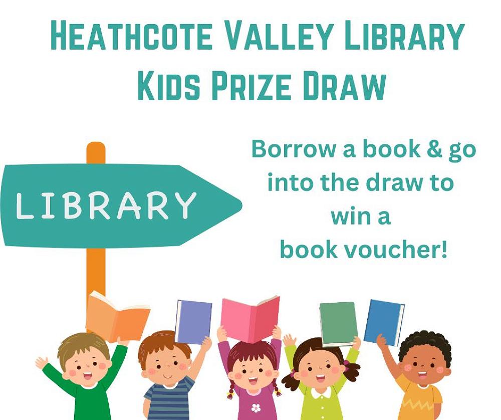 Any child aged 12 years or under who borrows a book from the Heathcote Valley Community Library in April will go in the draw to win one of two book vouchers ($50 & $20)!