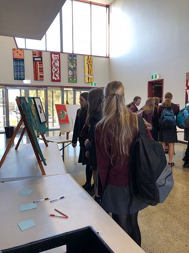 The engagement and support from the wider school community were overwhelming! we were swamped with students coming to view the works and vote for their favourite pieces for the People's Choice Award. The standard of work was extremely high so it came down to a small number of votes, however, I am proud to announce that the people's choice was piece 34 "Persephone", a watercolour composition by the talented Chloe Sutherland.