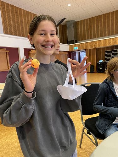 First up: a 'wordle' to get the brains warmed up, followed by a longer challenge that required the students to work out how to keep a ping pong ball in the air for the longest time using predominantly rubber bands, ice-block sticks and a balloon. Many an inventive solution was thought up, but the winners of this section managed to keep their ping pong airborne for 1.2 sec.